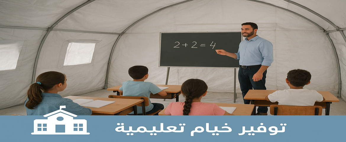ندعوكم للمساهمة في هذه الحملة الإنسانية، ودعم جهودنا في توفير خيمة تعليمية لكل مجموعة من الأطفال، ليواصلوا التعلم بأمان وكرامة حتى تعود مدارسهم من جديد.